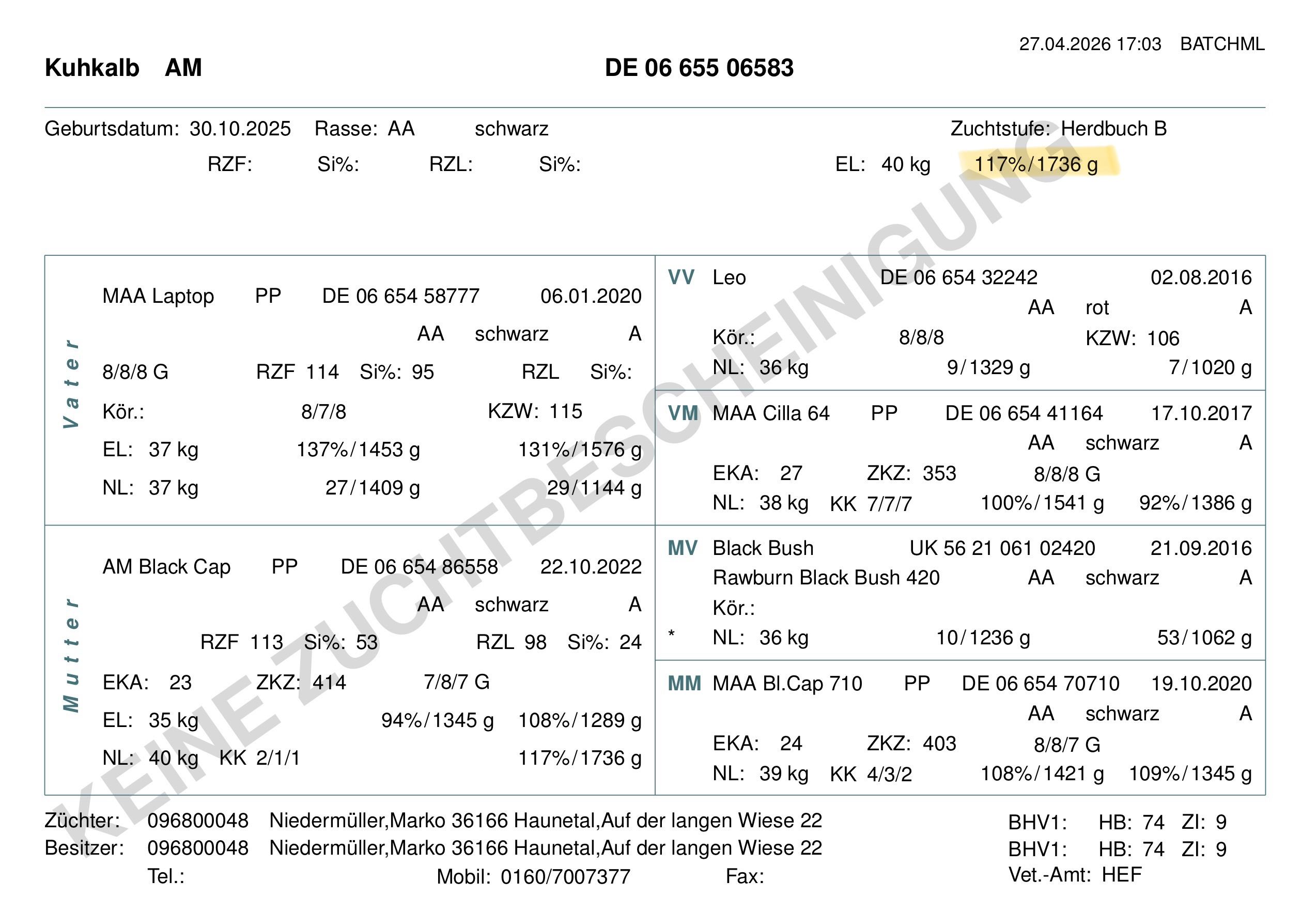 Ihre Mutter, BLACK CAP 710 (dob. 19.10.2020) ist eine Offerte der besonderen Art vom Biobetrieb von Ulrich Heinz.