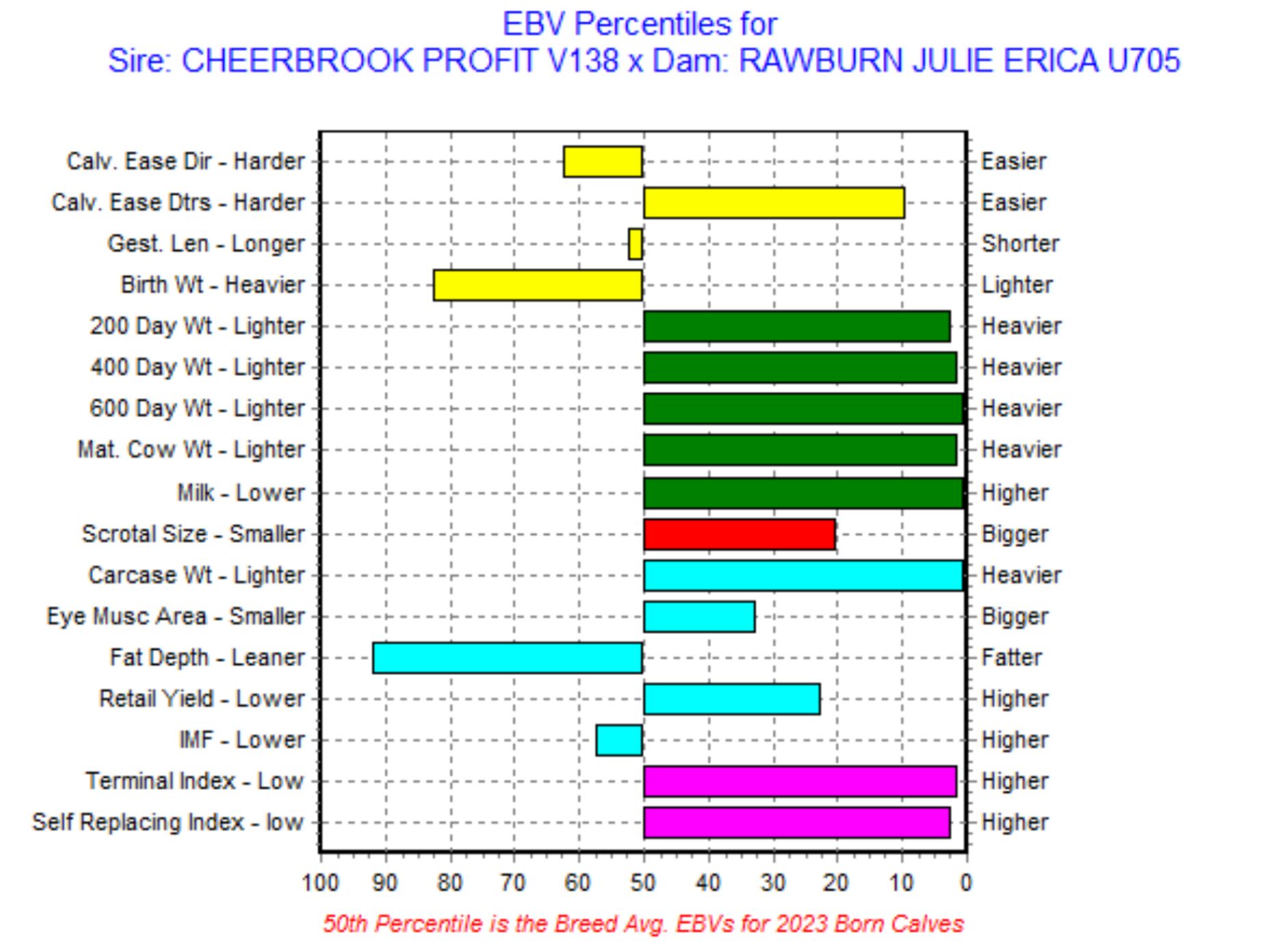 This bull has tremendous muscle , MYOSTATIN-FREE, cracking set of figures combining the growth and carcass traits with calving ease. Top percentile SRI-73 and TI—57, TOP 1% for growth, Milk and retail yield, full of Angus character and easy on the eye!
