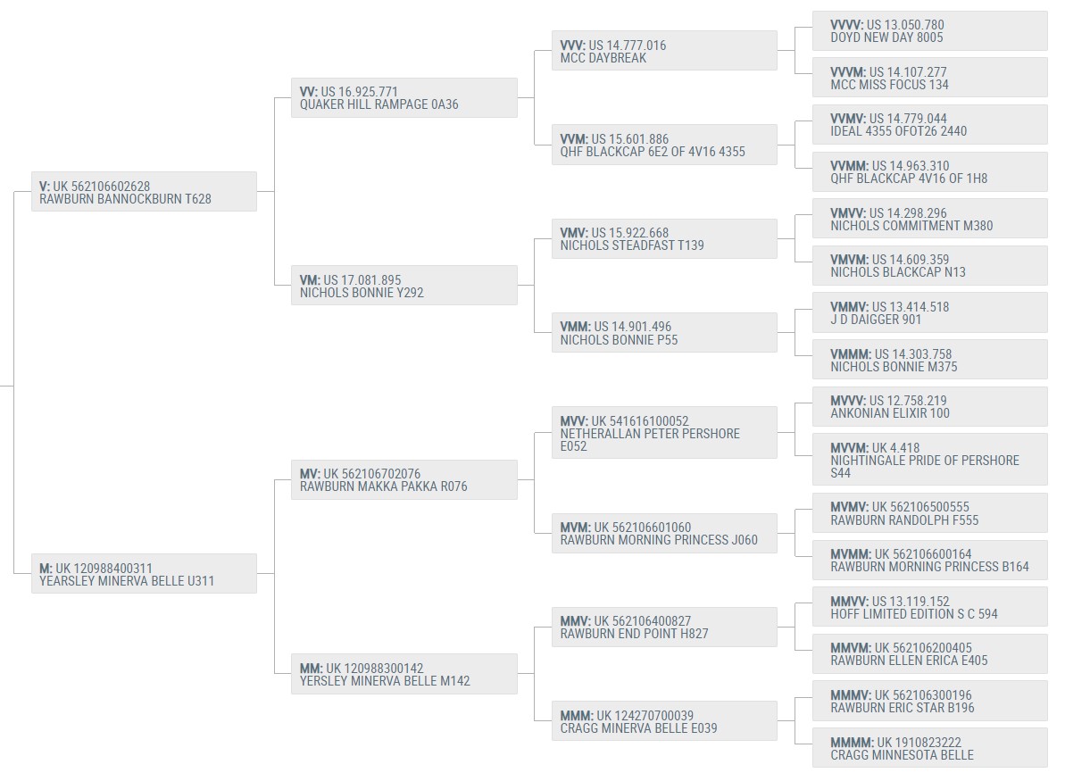 Minerva Belle U311 ist eine Rawburn Makka Pakka R076 Tochter! Super Mutterinstinkt, perfekte Euteranlage und sehr gute Milchleistung.