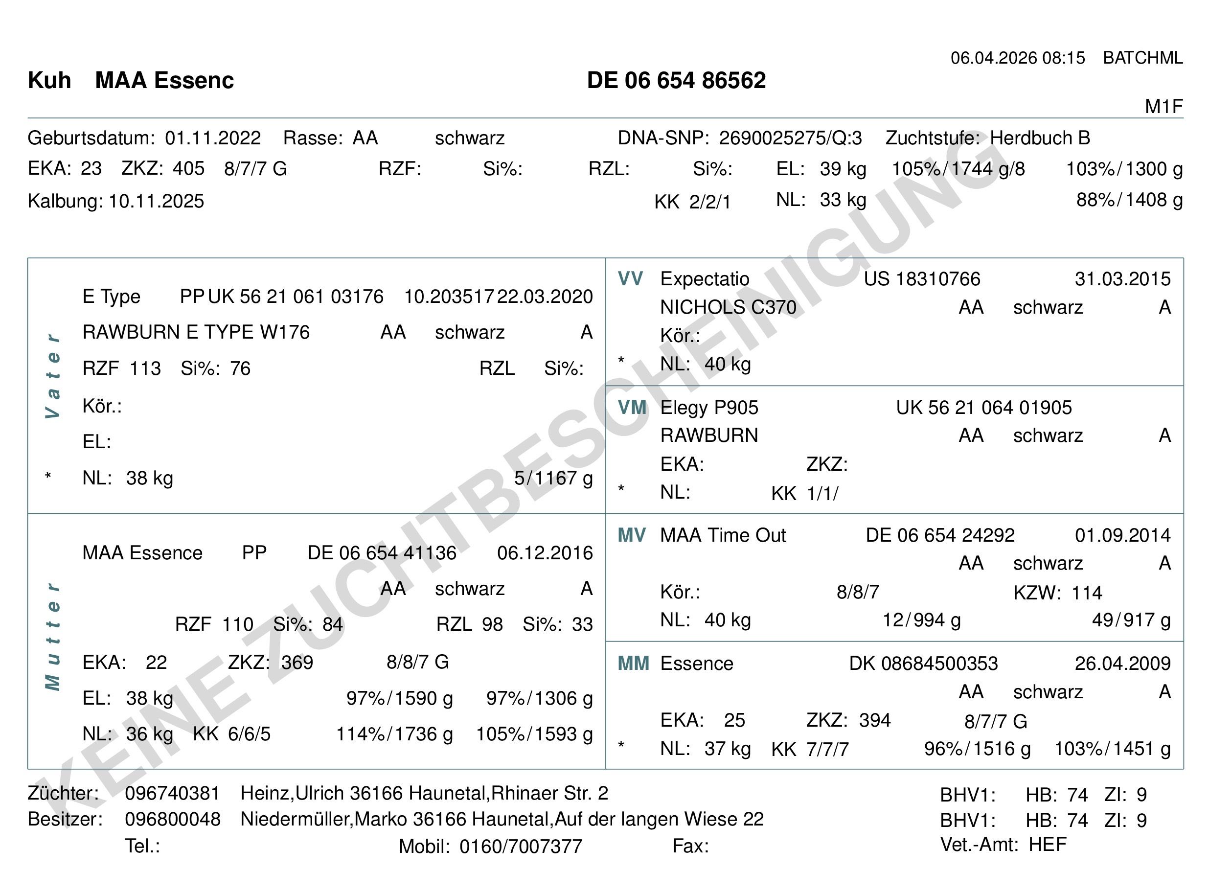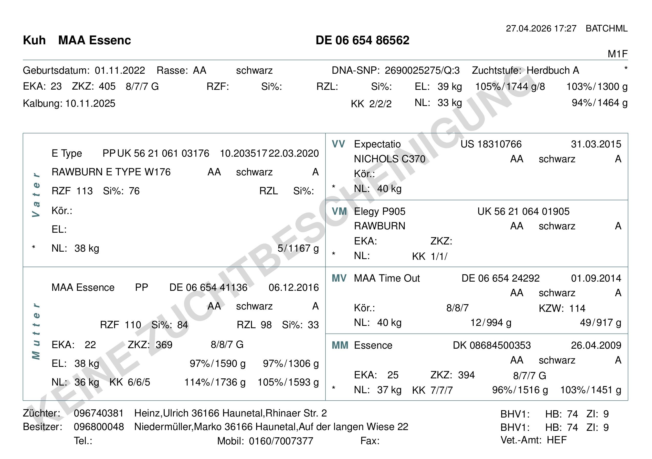 Werte und Pedigree MAA ESSENCE 562
