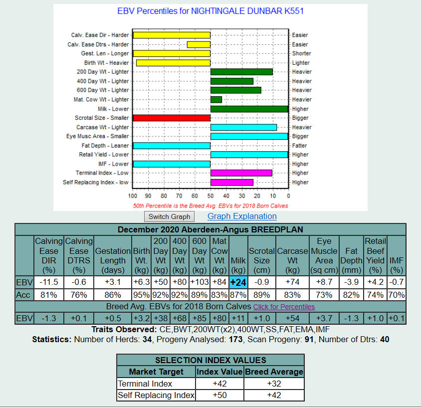 Dunbar is by Bosullow Elmark G209 and is out of Nightingale Duchess Z001 and has a TSI of +51 and an SRI of +63.