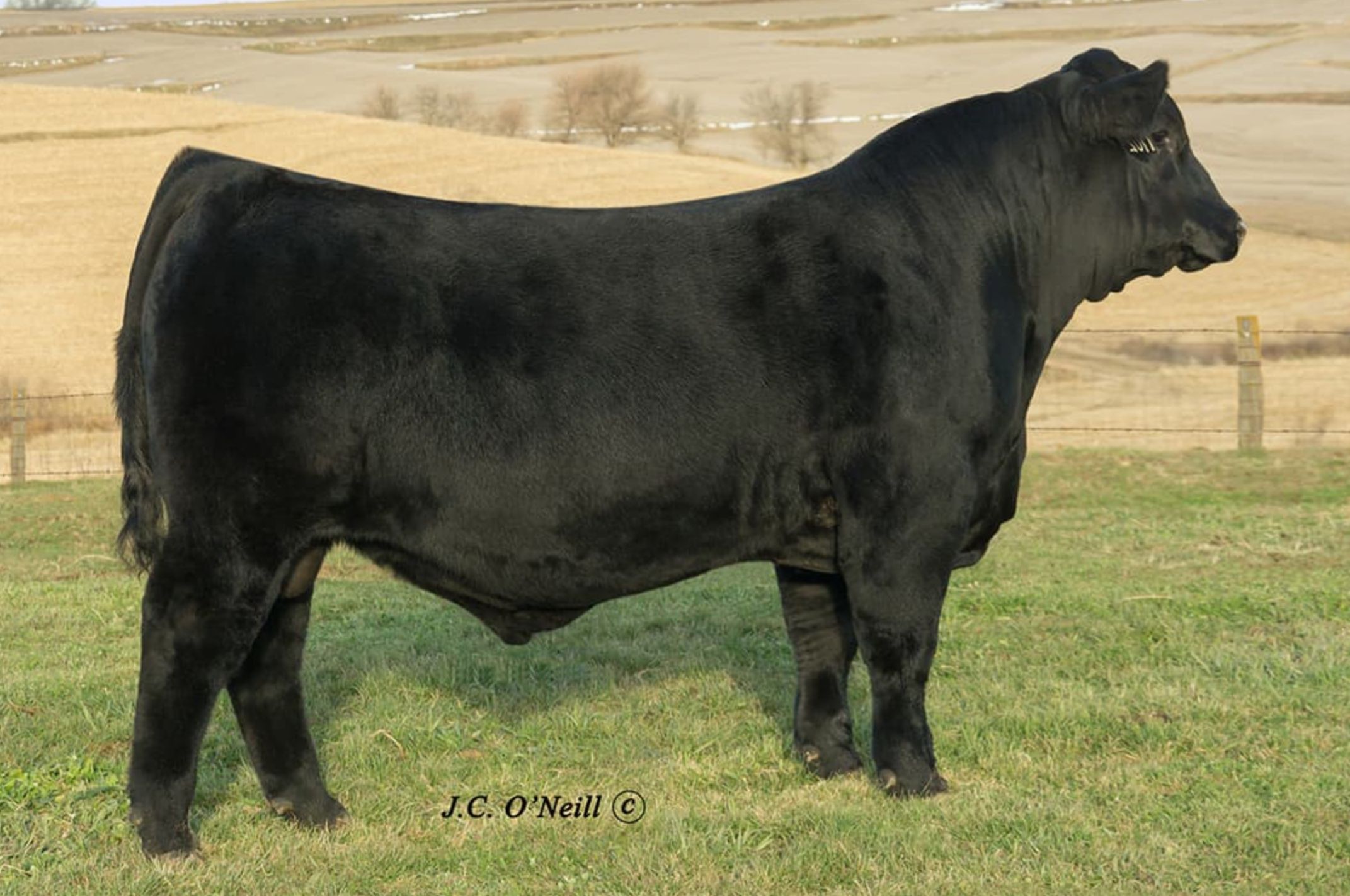 Maternal sister to “Black Bardolier” sold to Jake Clarke & Roger Clausen of NE for $10,000. Two full sib Embryos sold in the 2016 NWFF Sale for $2,600 each. Dam was the High selling cow in the ONeills 2016 sale at $34,000. Black Bardolier is the heaviest muscled bull ever raised at O'Neill Angus Farm, all while combining phenotype and a strong growth EPD profile. Every cow behind this bull has a perfect udder and feet. Performance with tremendous docility. We have used Black Bardolier heavily in our program, stop by and check out his progeny.