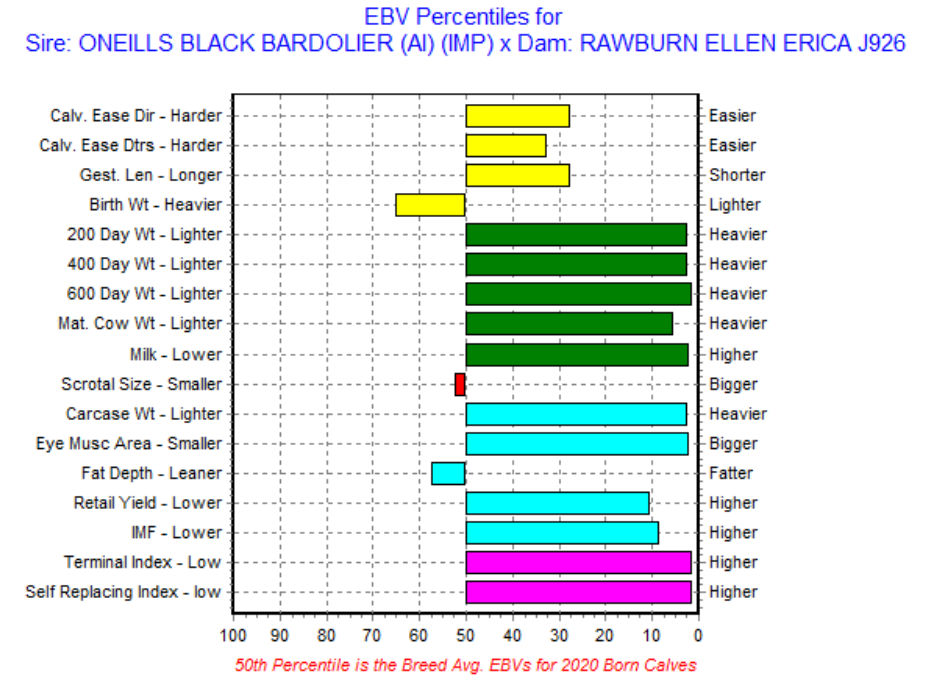 Mutter ist RAWBURN ELLEN ERICA J926, eine der besten Jungkühe bei RAWBURN aus der berühmten Ellen Erica Linie.